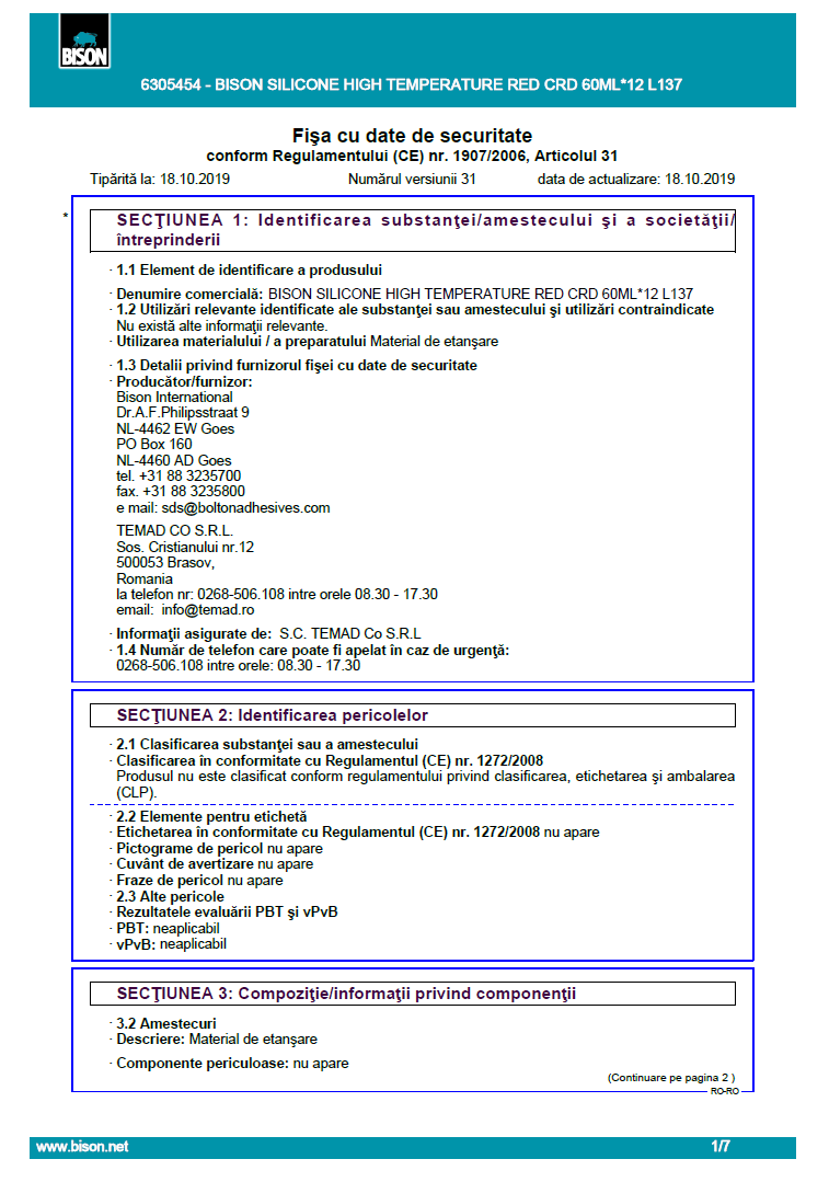 Alege BISON High Temp Roșu pentru o etanșare profesională și de lungă durată în aplicații cu temperaturi extreme!